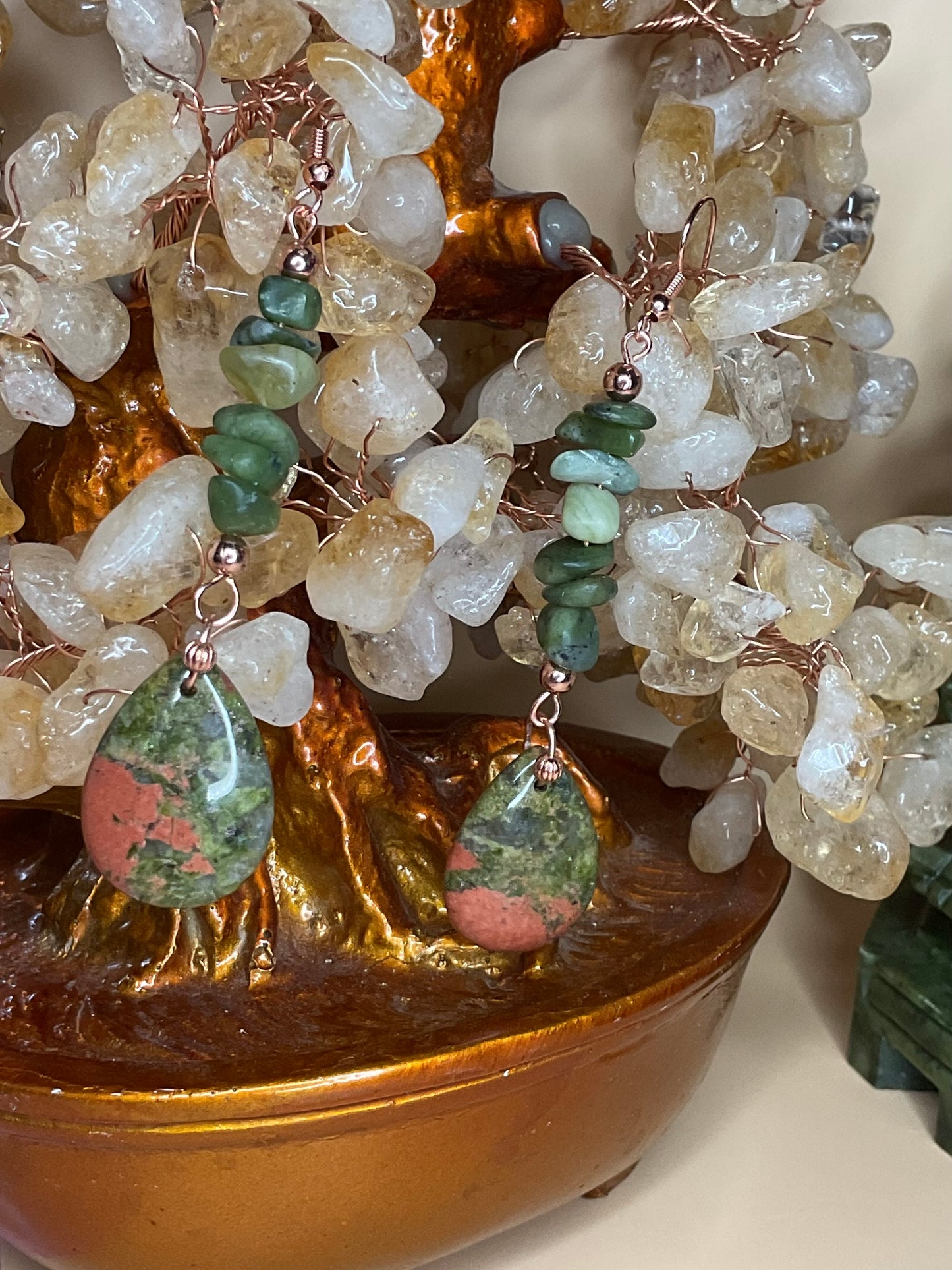 Unakite and green jasper chip Earrings
